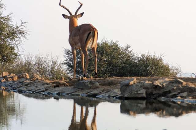 Claudia: Einige Lodges, vor allem im Madikwe Game Reserve, haben außerdem sogenannte „Hides“, also unterirdische Verstecke an den Wasserlöchern, wo man den Tieren quasi auf Augenhöhe begegnet. Da stehen dann Zebras, Antilopen und Nashörner direkt vor einem, so nah, dass man den von den Hufen aufgewirbelten Staub richtig auf der Zunge schmeckt.