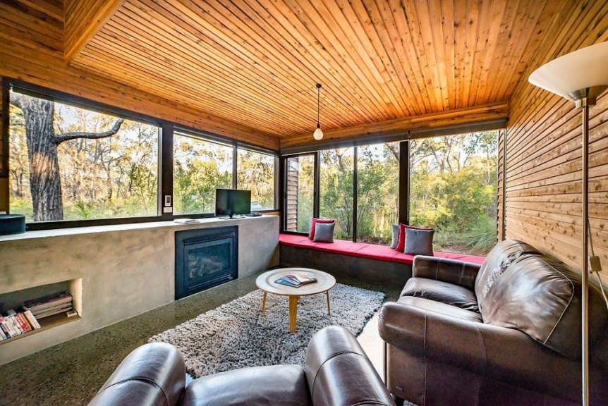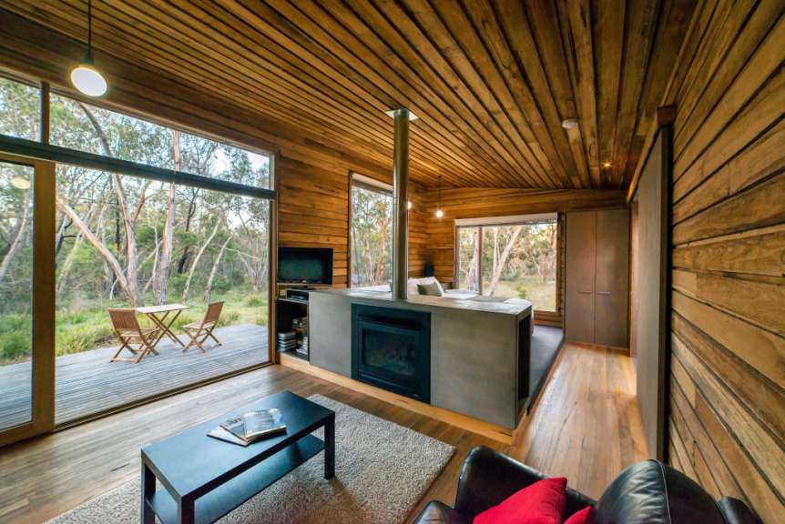 Die ein- und zweistöckigen, ausgefallenen Designer-Cabins liegen in der bewaldeten Umgebung von Halls Gap in den Grampians. Sie wurden so entworfen, dass sie sich harmonisch in die Umwelt integrieren und bieten viel Privatsphäre. Jede Cabin ist mit polierten Beton- und Holzböden, bodentiefen Fenstern, einem Kamin und einer Küchenzeile ausgestattet und in einem Stil eingerichtet, der Komfort mit rustikalem Ambiente verbindet.