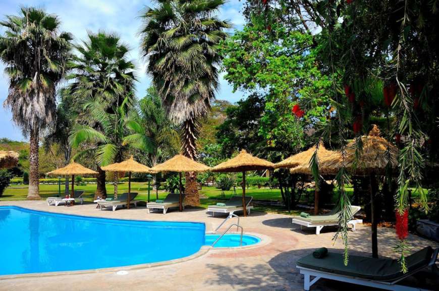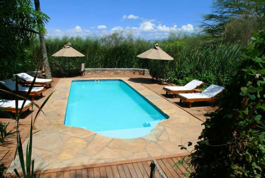 Die Lodge liegt zwischen Kilimanjaro Airport und Arusha in einem etwa 50.000 Quadratmeter großen parkähnlichen Garten, der von zwei Flüssen eingerahmt wird, an denen alte Bäume wachsen. Das Hauptgebäude beherbergt neben der Rezeption eine gemütliche Lounge, eine Bar und ein Restaurant. Von dessen Terrassen aus reicht der Blick über die tropischen Gärten und den Pool zu den Bergen Meru und Kilimandscharo. Die 28 geräumigen Zimmer mit Dusche/WC und Veranda sind wie das Haupthaus im afrikanischen Stil gehalten. Einheimische Handwerker und Künstler haben die Möbel und Dekorationsgegenstände mit viel Liebe zum Detail hergestellt.