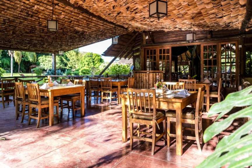 Aperitifs werden am Lagerfeuer gereicht. Das Restaurant ist gut und für die Bedingungen in der Wildnis sogar exklusiv. Die Bar schließt erst, wenn der letzte Gast zu Bett gegangen ist. Es gibt 24 Stunden am Tag Elektrizität.
