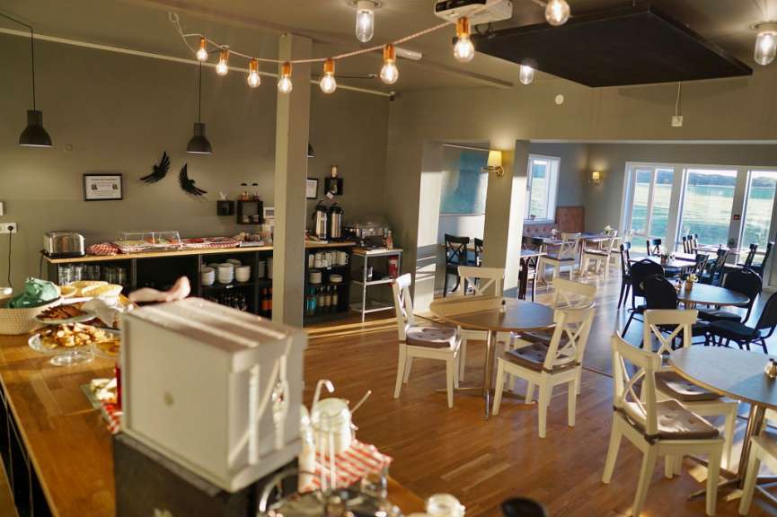 Das Hotel liegt direkt am kleinen Hafen von Keflavik, eine ideale Lösung, wenn man einen frühen Flug nach Hause hat. Mit dem Auto sind es nur fünf Minuten zum Flughafen. Dennoch ist das Haus mehr als nur ein praktisches Flughafenhotel: Das Design ist stylisch und modern. Auch die Zimmer sind bequem und haben ein großes Bad. Auf dem Dach wartet ein 40 Grad warmer Pool mit Blick in den Hafen, den man kostenlos nutzen darf. Im hoteleigenen Restaurant wird ein mehrgängiges Menü angeboten, dessen Gerichte sich vor allem auf Gemüse und Meeresfrüchte aus der Region konzentrieren.
