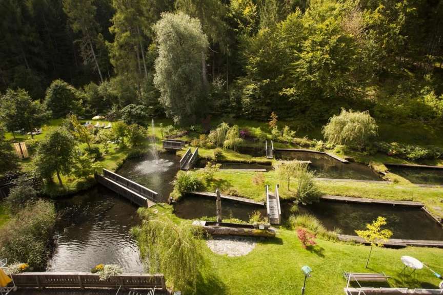 Das 4-Sterne-Hotel liegt ganz allein und wildromantisch am Tristacher See, wenige Kilometer südlich von Lienz. Die Lienzer Dolomiten sind ebenso gut zu erreichen wie das nördlich gelegene Großglockner Massiv. Trotz seiner 42 hochwertig eingerichteten Zimmer erinnert es eher an ein persönlich geführtes Hotel als an einen großen Betrieb. Die Bilder sind sorgfältig ausgesucht; selbst im Hallenschwimmbad gibt es ein Wandgemälde. Die Gesellschaftsräume sind hell und luftig, besonders der Wintergarten direkt über dem See. Das Gourmet-Restaurant wurde mehrfach ausgezeichnet. Spezialitäten sind Forelle, Zander und Hecht aus dem See. Im Sommer kann man im See baden. Mehrere Wanderwege führen am Hotel vorbei.