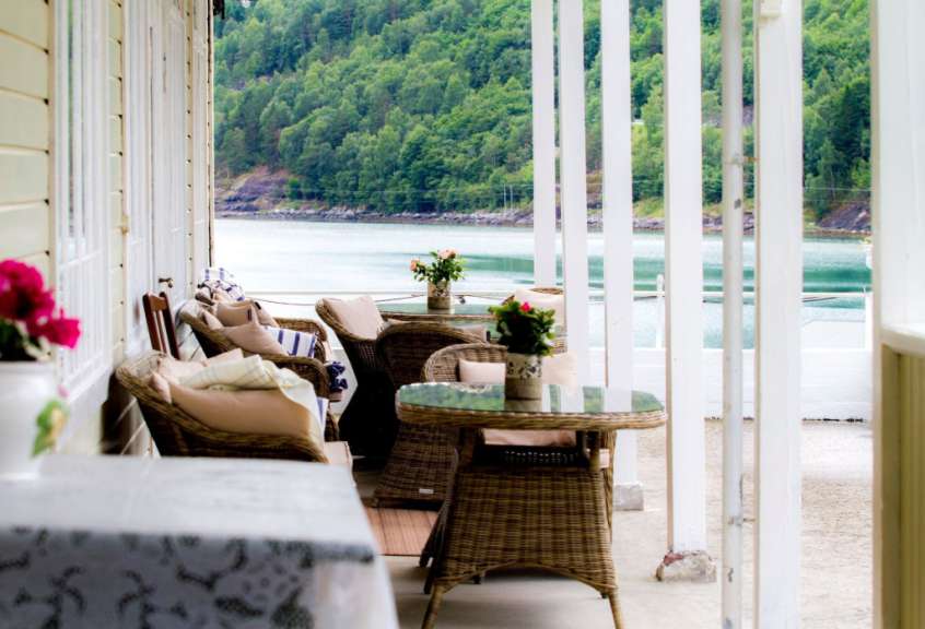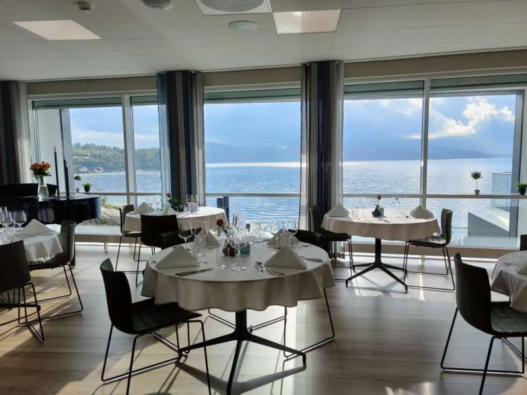 Das familiengeführte Hotel liegt inmitten der malerischen Natur des Hardangerfjords. Insgesamt gibt es neun Gästezimmer, die mit dunklen Naturfarben und großen Panoramafenstern ein ruhiges Ambiente schaffen. Jedes der Zimmer hat Zugang zu einer eigenen Terrasse sowie einen schönen Blick auf den Fjord. Nach dem Frühstück im lichtdurchfluteten Speisesaal kann man aktiv in den Tag starten, zum Beispiel mit einer Wanderung oder einer Fjord-Safari. Alternativ bietet der hoteleigene Wellness-Bereich Entspannung in der Sauna oder bei einer gebuchten Anwendung.